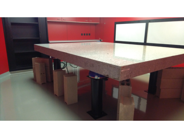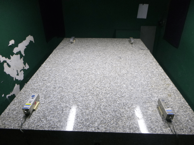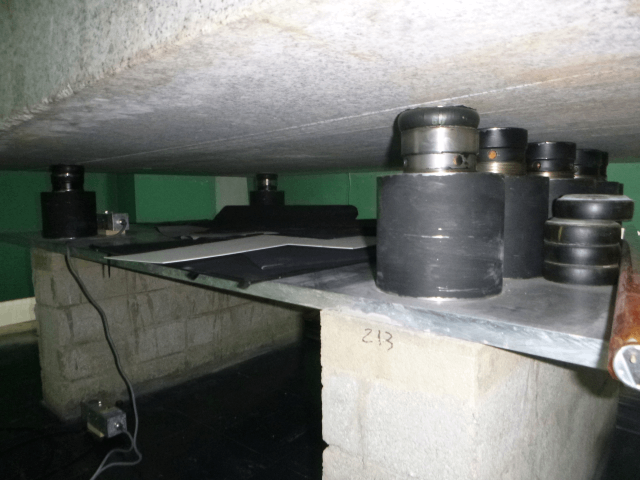 Trois massifs en granit sur appuis antivibratiles ont fait l’objet de mesures. Chacun des massifs possède des appuis d’isolation vibratoire différents, ce qui en modifie l’atténuation vibratoire.