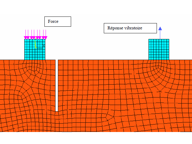 - la prévision des niveaux vibratoires propagés par le terrain de Bruz sous l’effet des moyens d’essais futurs (modèle à éléments finis 2D et 3D sous ANSYS).