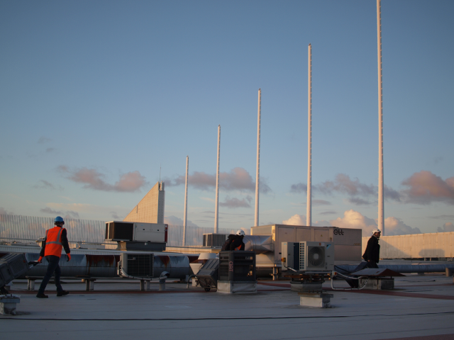 Deux systèmes d’acquisition indépendants placés en toiture numérisent chacun 26 voies de mesure en continu. Quatre caméras permettent de visualiser les mouvements de l’ensemble des mâts.