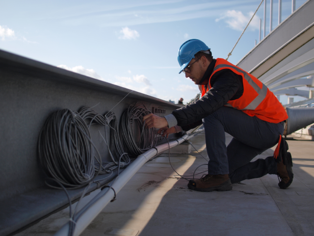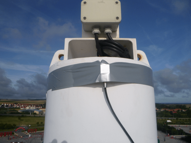 La mise en vibration des mâts sous certaines conditions de vent a nécessité la réalisation d’une campagne de mesures vibratoires sur 16 mâts afin d’identifier leurs fréquences propres et amortissements.