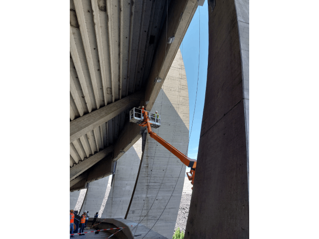 Une deuxième série de mesures a été effectuée, consistant à mesurer la réponse vibratoire des tribunes sous l’effet de chargements dynamiques contrôlés. Ces valeurs pourront être comparées aux valeurs des mesures qui seront réalisées après la phase de travaux.