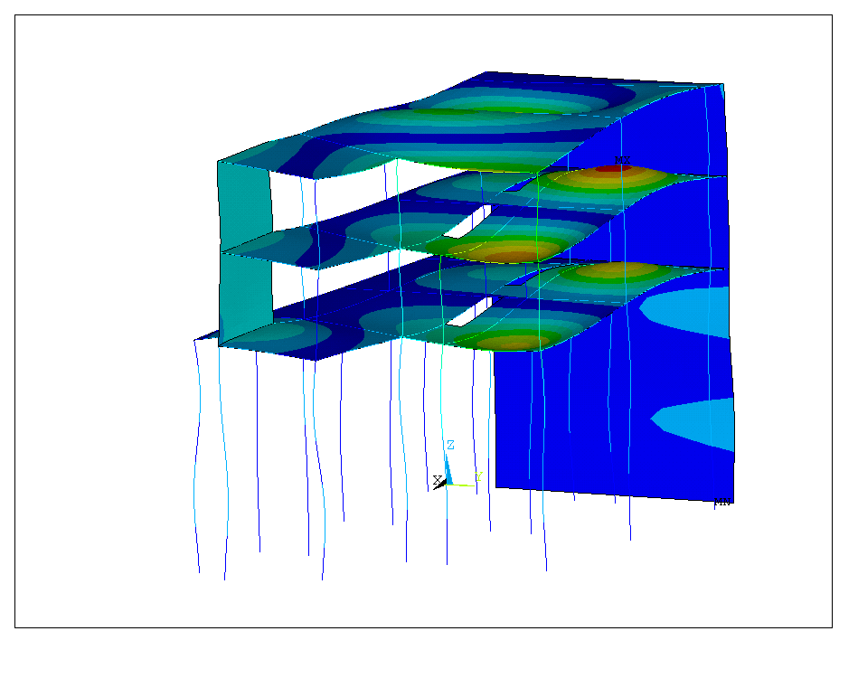 Un excitateur dynamique a été utilisé pour l’identification des modes, avec un maillage de 80 points de la structure.