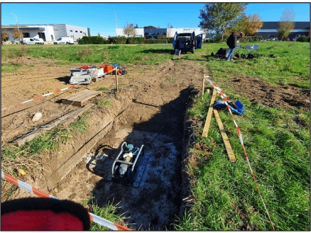 Les réponses vibratoires résultantes ont été mesurées en différents points du terrain pour obtenir des fonctions de réponse en fréquence (FRF) comparables aux résultats de calcul.