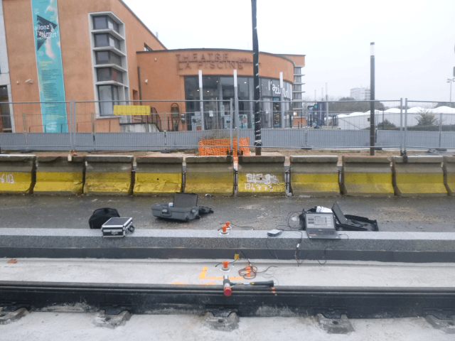Mesures de contrôle dynamique de pose de voie antivibratile.