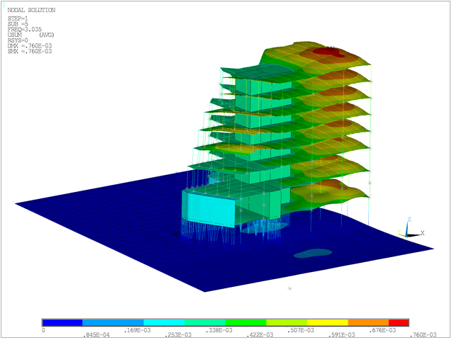 La mise en œuvre du projet sur des infrastructures de type « poutres de grande portée » aura rendu délicat le choix du système de désolidarisation antivibratile des bâtiments impliquant la modélisation fine de leurs structures acier et béton.
